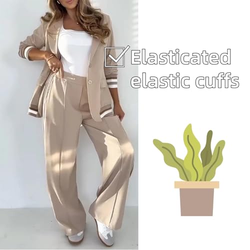 More information about 2025 Temperament Solid Color Ribbed Suit Set, Womens Dressy 2 Piece Pant Suits,Blazer and Straight Leg Pants Sets