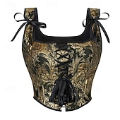 More information about Women's Corset Shapewear Waist Cincher Shapewear Sexy Corset Sexy Sweet Floral Patchwork Vacation Party Street Sleeveless U Neck Gold Black Gold Spring Fall Tailored Fit