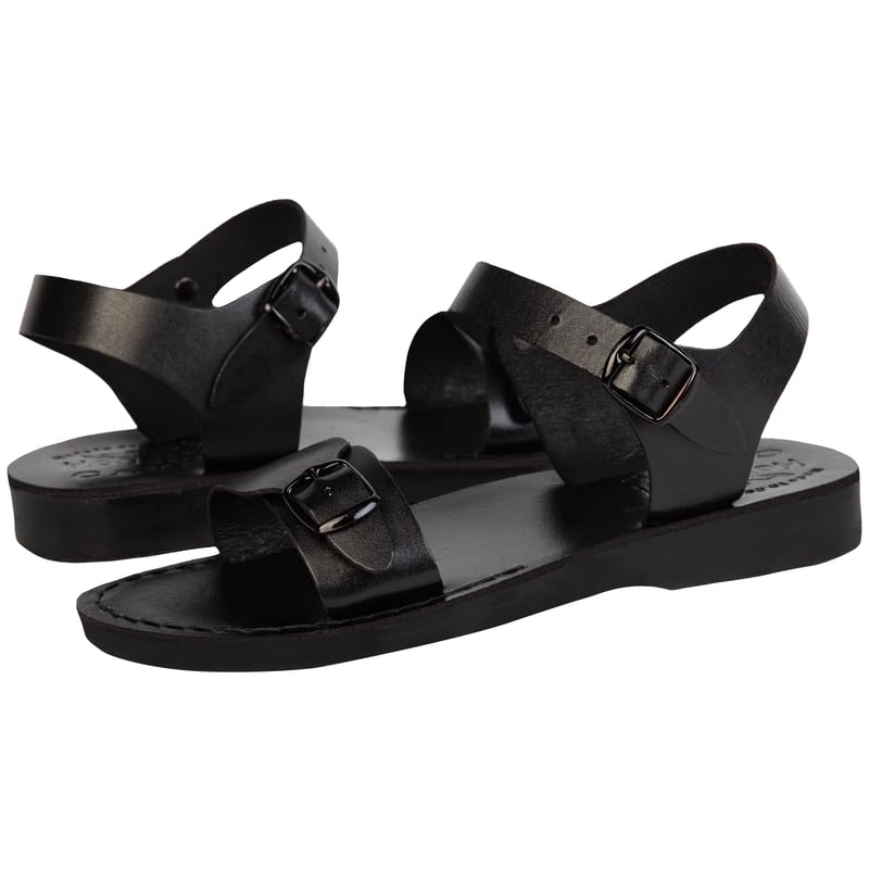 HOT ! Holy Land Market Men/Women Biblical Jesus Leather Sandals/Slides From Jerusalem (Jerusalem Black)