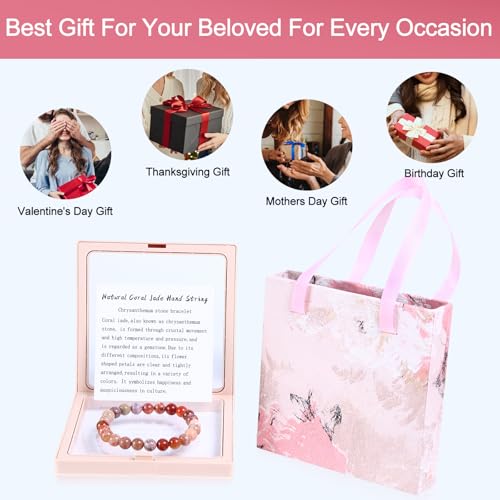Natural Coral Jade Bracelets for Women 8mm, Gift Box Packaging Bead Bracelet, Can Be Used As Crystal Healing, Meditation, or As a Gift for Family and Friends 5