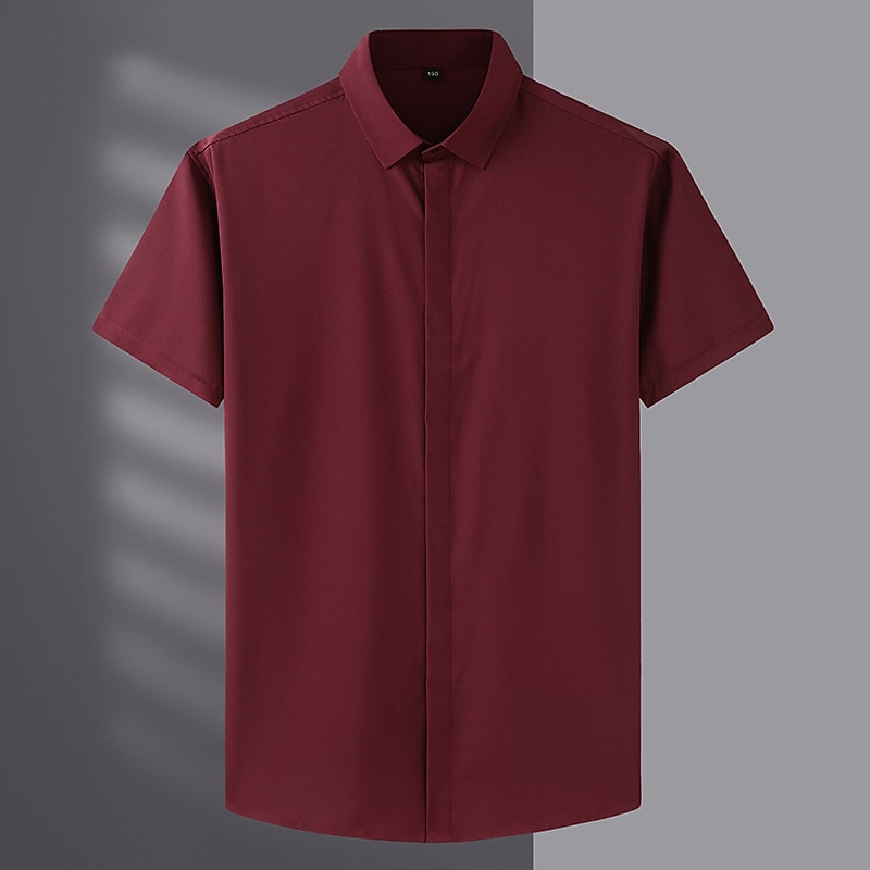 Men's Shirt Dress Shirt Plain Office & Career Wedding Party Black White Red Blue Short Sleeve Lapel Summer Clothing Apparel 11