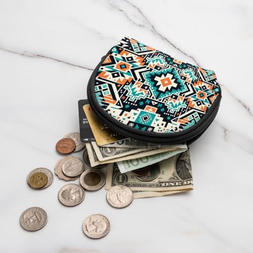 Portable Coin Purse Colorful-Navajo-Aztec Mini Zippered Money Pouch Card Holder 1