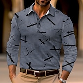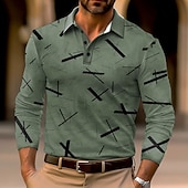 More information about Men's Geometric Polo Shirts Golf Shirt Long Sleeve Polo Shirts Collared Shirts Business Casual WorkWear Formal Wear Festival Wear 3D Print Buttons Fall & Winter Blue Green Khaki