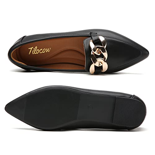 Tilocow Chain Flats Shoes, Loafers for Women Dressy Slip On Pointed Toe Flats, Work Shoes for Women 7