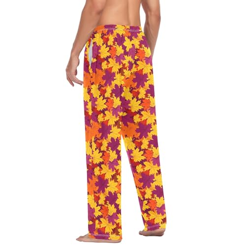 Mens Cotton Pajama Pants Sleep Lounge Pj Bottoms Sleepwear with Pockets Drawstring S Autumn Maple Leave 3