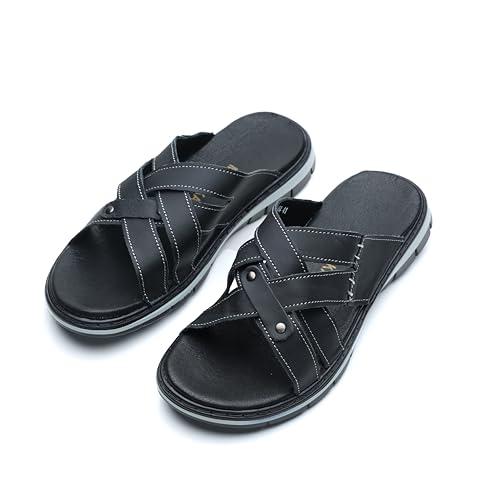 HOT ! MGGMOKAY Men's Slide Sandal Mens Leather Sandals Comfortable Lightweight Summer Casual Beach Slides for Men
