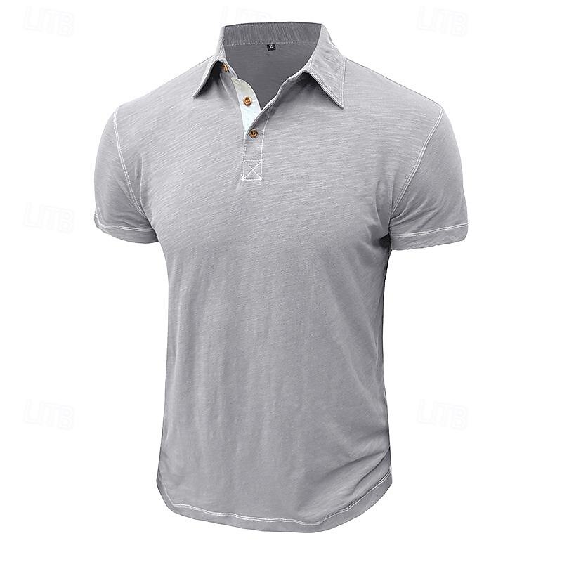 More information about Men's Cotton Polo Shirt Golf Shirt Work Casual Lapel Short Sleeve Basic Modern Plain Button Spring & Summer Regular Fit Black Yellow Pink Royal Blue Blue Green Cotton Polo Shirt