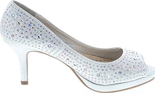CITYCLASSIFIED Comfort Soft Foam Peep Toe Glitter Rhinestones, High Heel Dress Pump 5