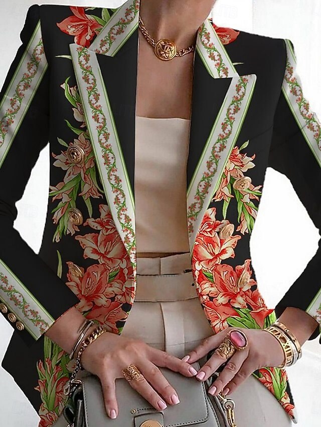 More information about Women's Blazer Comfortable Breathable Print Fashion Casual Floral Formal Work Office / Career Double Breasted Regular Turndown Regular Fit Long Sleeve Outerwear Black White Navy Blue Summer