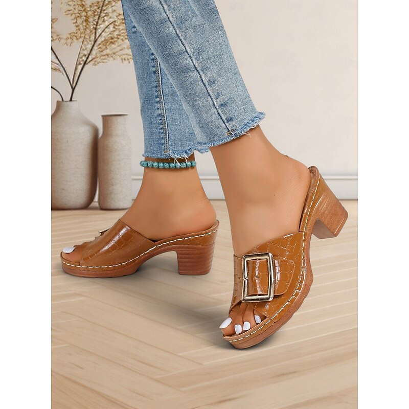 Highlights - High-quality PU upper material - Stylish buckle embellishment - Comfortable chunky heel - Classic round toe shape - Durable rubber outsole - Perfect for the 2024 Boho Beach trend.