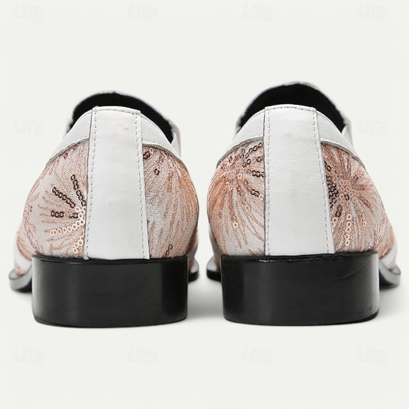 Men's Premium Cowhide Leather Loafers with Gold Tip Sequined Floral Design and Crystal Buckle Detail–Luxury Slip-On Shoes for Special Occasions and Evening Wear 4