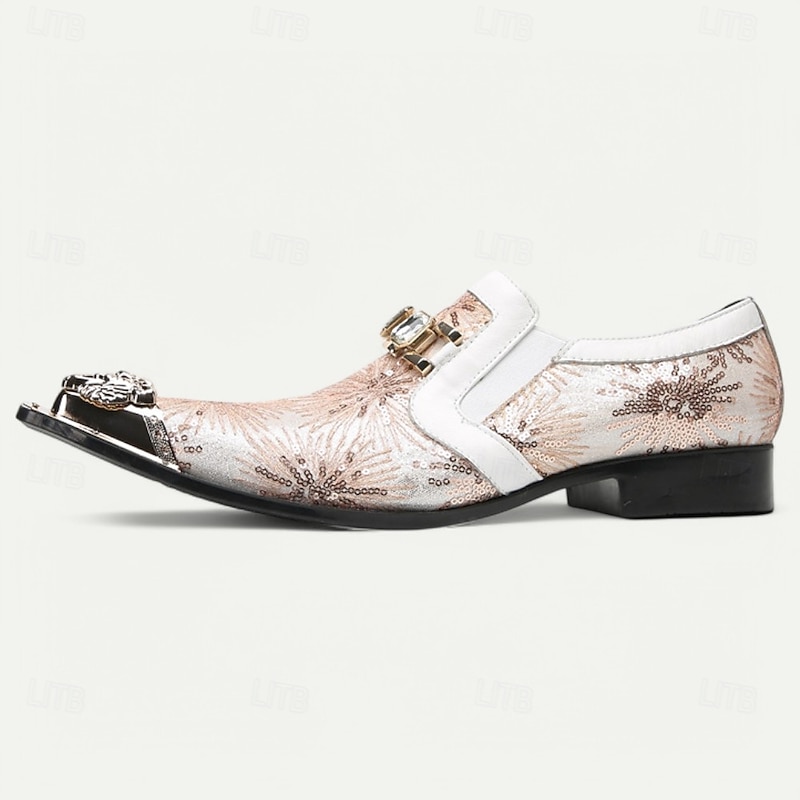 Men's Premium Cowhide Leather Loafers with Gold Tip Sequined Floral Design and Crystal Buckle Detail–Luxury Slip-On Shoes for Special Occasions and Evening Wear 1