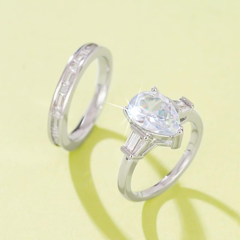 More information about Sdouefos 2PCS Pear Shaped Wedding Ring Set for Women Platinum Plated Silver Moissanite Bridal Sets Wedding Rings Teardrop Engagement Ring Set Radiant Cut Engagement Rings Set Size 7