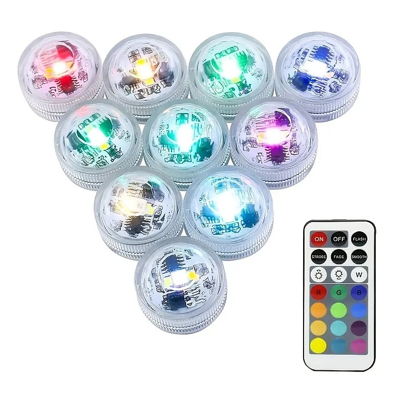 10pcs Submersible LED Lights Underwater Multicolor Lights Waterproof Remote Controlled RGB Swimming Pool Suitable for Tub Pond Vases Aquariums 10
