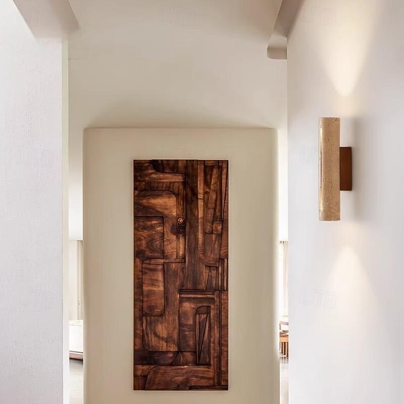 Indoor Double Head Up and Down Wall Lamp, Japanese Wabi-sabi Style, Natural Yellow, Travertine, Bedroom, Living Room, Back Wall, Corridor, Hotel 2