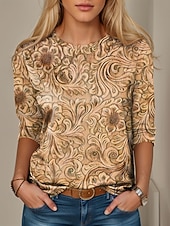 More information about Women's T shirt Long Sleeve Crew Neck Long Sleeve Tunic Floral Graphic Plants Vintage current Classic Regular Tops Daily Weekend Print Yellow Beige Prefall