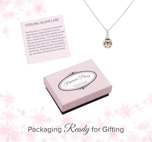 • PREMIUM QUALITY – Necklace is designed with .925 sterling silver and features an adorable ladybug pendant with red sparkling CZs on a high-quality sterling silver (14 inch) chain with durable lobster clasp. This makes a timeless keepsake she will treasure forever (8x12mm charm)