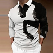 More information about Men's Horse Polo Shirts Golf Shirt Long Sleeve Polo Shirts Collared Shirts Casual Funny Streetwear Vacation Wear Party Outfits 3D Print Buttons White Navy Blue