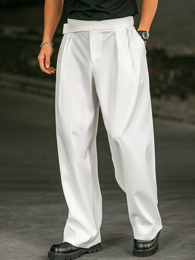 HOT ! Men's Dress Pants Trousers Chinos Slacks Pocket Elastic Waist Plain Comfort Formal Party Work Fashion Classic Style White Micro-elastic