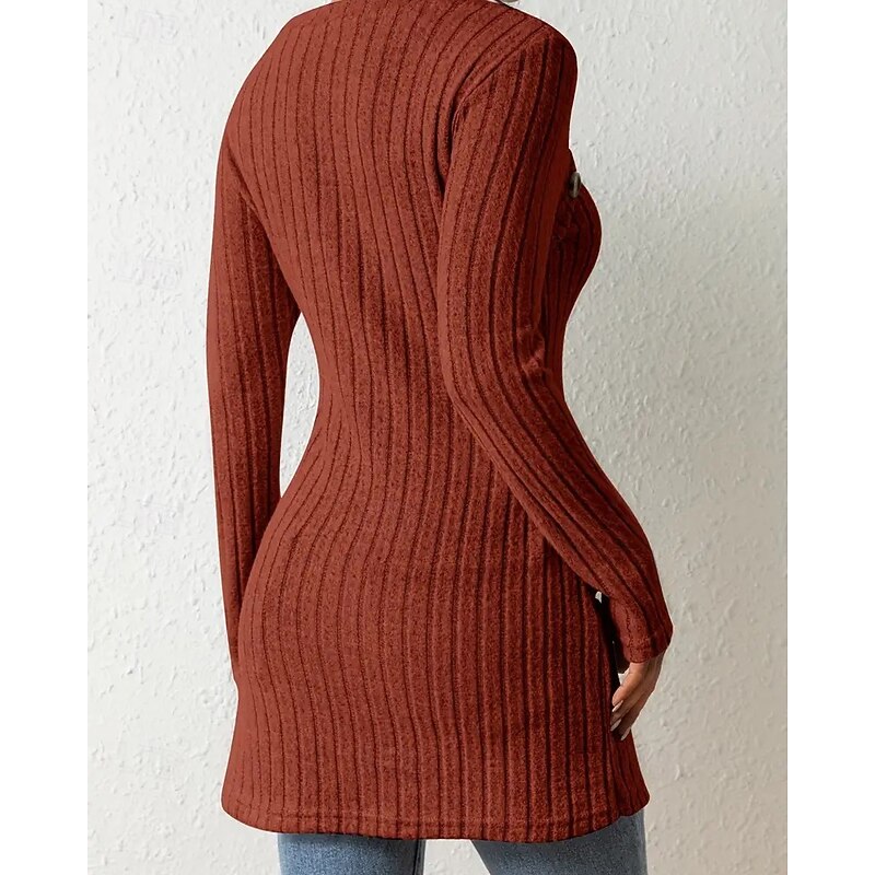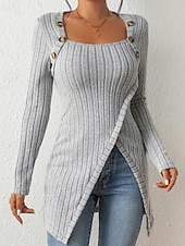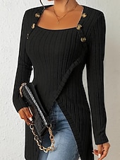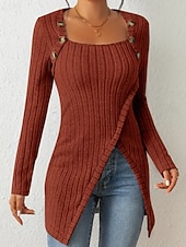 More information about Women's T Shirt Tee Top Solid Color Elegant Fashion Long Sleeve Square Neck Regular Tops Daily Weekend Buttons Asymmetrical Black Brown Rose Pink Gray Spring Fall