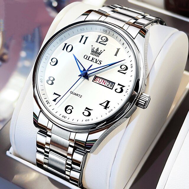 OLEVS Men Quartz Watch Calendar Large Dial Waterproof Day Date Titanium Alloy Watch 20