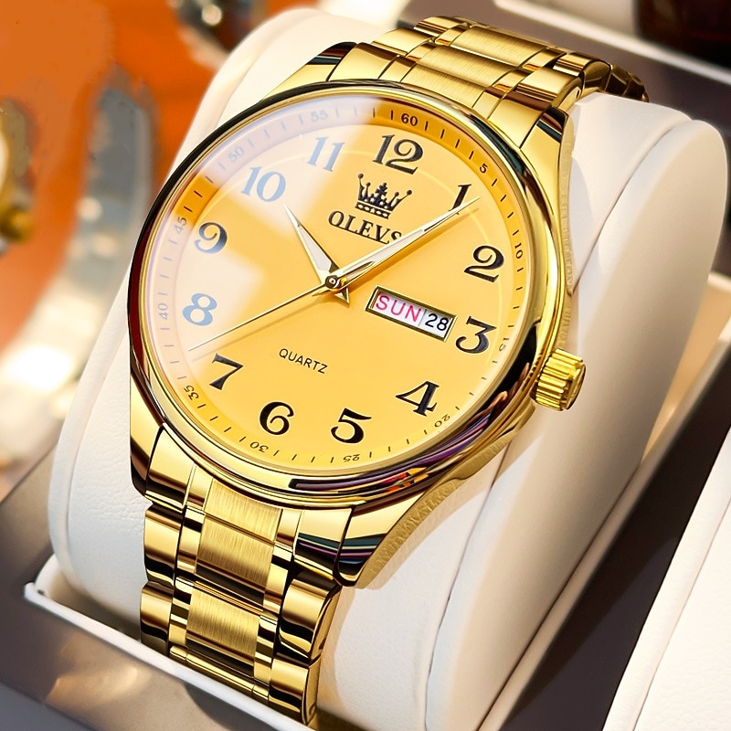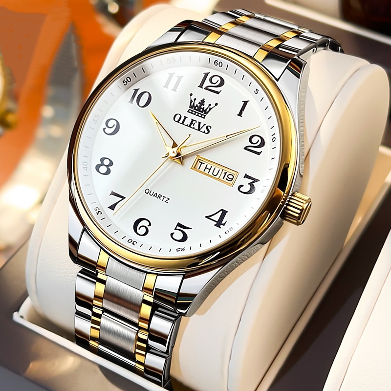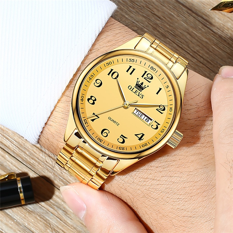 OLEVS Men Quartz Watch Calendar Large Dial Waterproof Day Date Titanium Alloy Watch 1