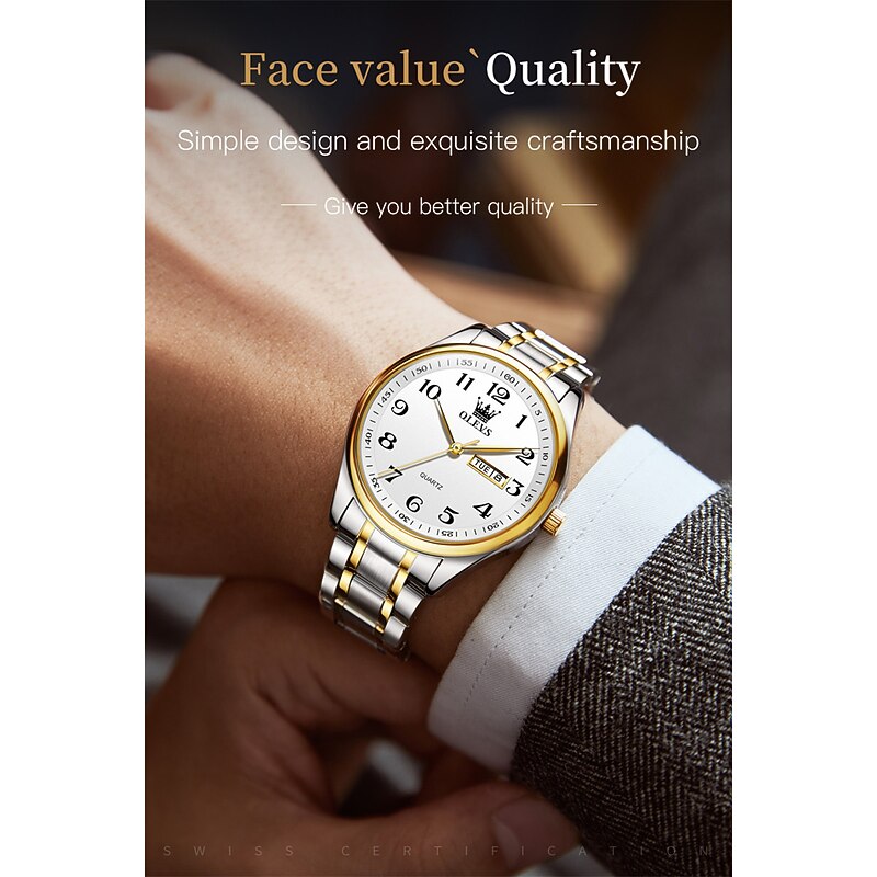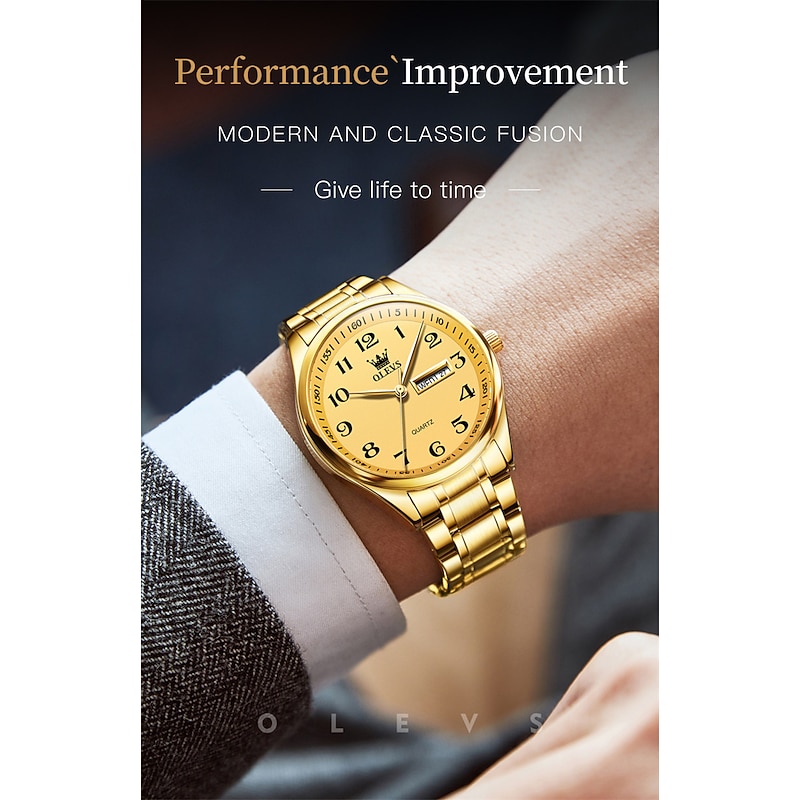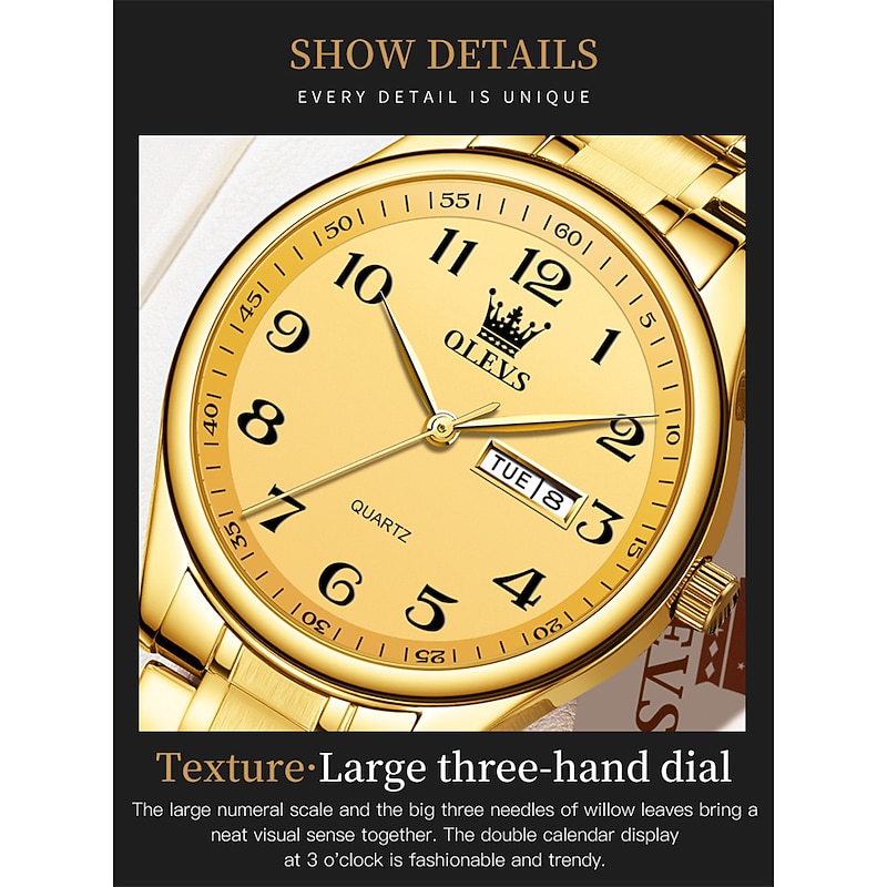 OLEVS Men Quartz Watch Calendar Large Dial Waterproof Day Date Titanium Alloy Watch 11