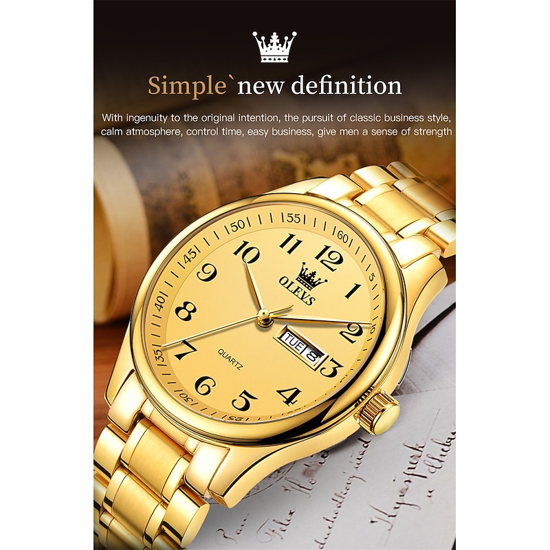OLEVS Men Quartz Watch Calendar Large Dial Waterproof Day Date Titanium Alloy Watch 22