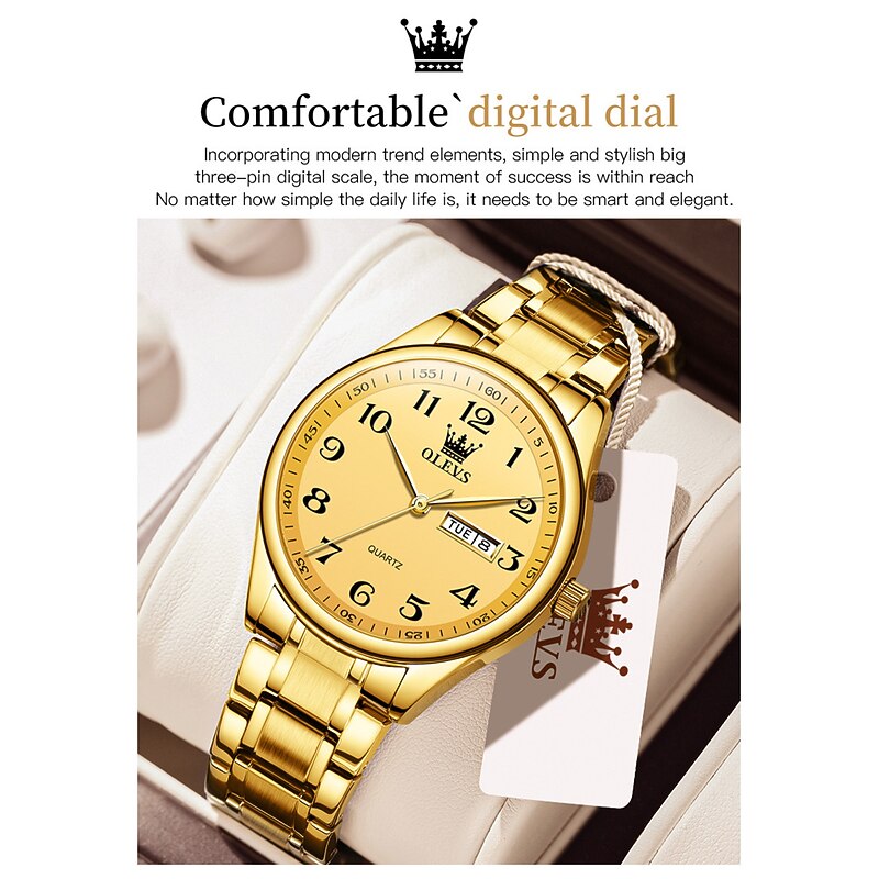 OLEVS Men Quartz Watch Calendar Large Dial Waterproof Day Date Titanium Alloy Watch 19
