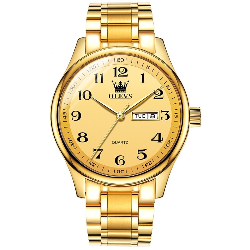 OLEVS Men Quartz Watch Calendar Large Dial Waterproof Day Date Titanium Alloy Watch 9