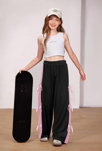 Girls Fall Cute Bowknot Side Wide Leg Sweatpants Y2K Color Block Baggy Track Pants 5-14 Years 6