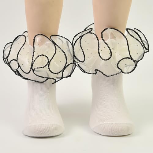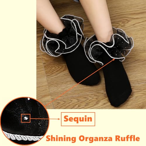 • Lovely Ruffles:Sparkling organza sequin ruffles making you special.The ruffles are made of soft organza material and hold their shape.The socks will look great with a pair of a dress.