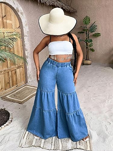 WDIRARA Women's Ruffle Trim Hem Wide Leg Elastic High Waisted Summer Denim Jean Flare Pants 4