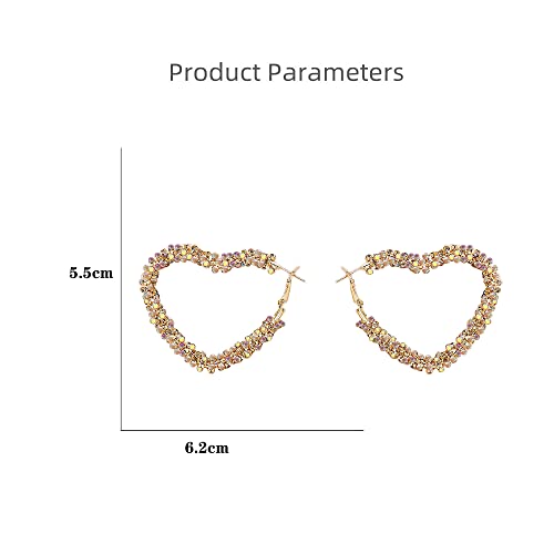 HOT ! Shiny Big Heart Hoop Earrings for Women Girls Boho Rhinestone Wrapped Huggie Hoops Dangle Earring Lightweight Comfortable Sparkle Wedding Christmas Birthday Jewelry Gifts 50mm
