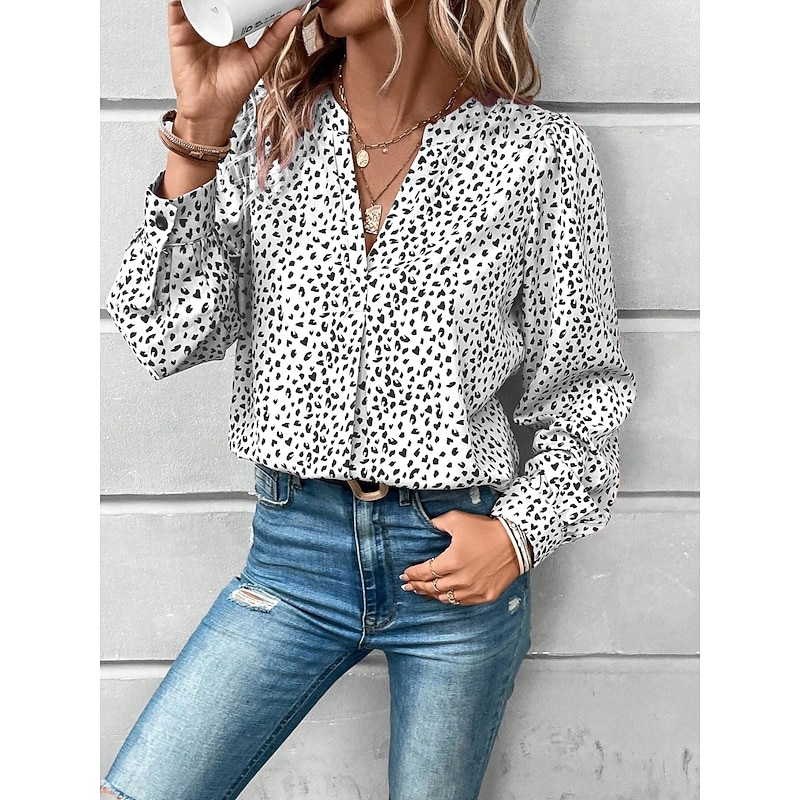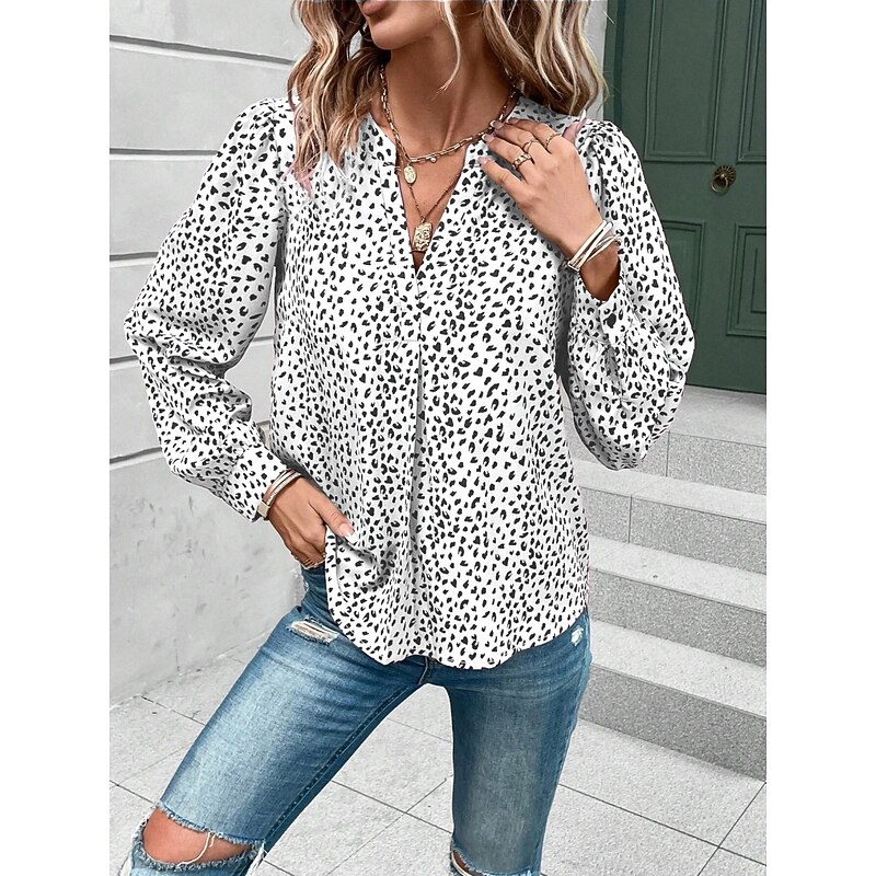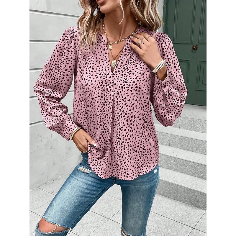 HOT ! Women's Shirt Blouse Leopard Stylish Casual Long Sleeve Notched Neck Regular Tops Daily Print White Pink Summer Spring