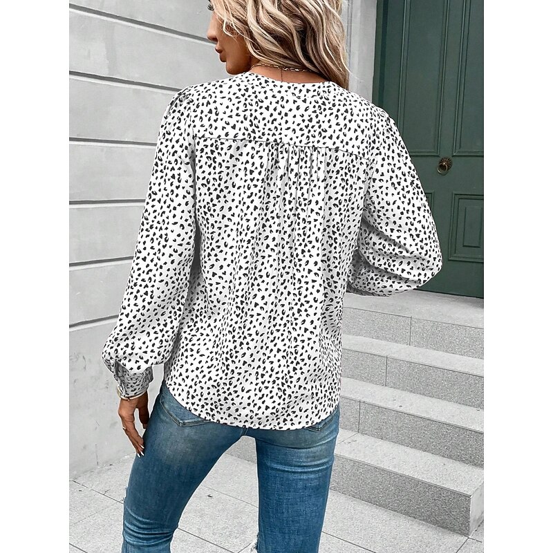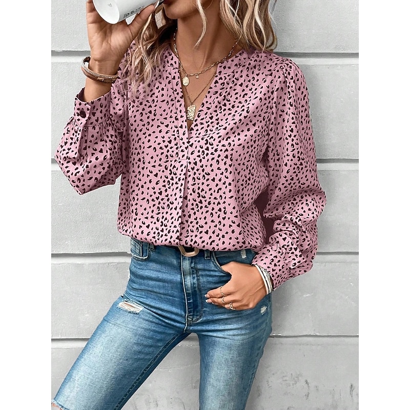More information about Women's Shirt Blouse Leopard Stylish Casual Long Sleeve Notched Neck Regular Tops Daily Print White Pink Summer Spring