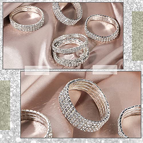 Yaomiao 7 Pieces Rhinestone Stretch Bracelet Tennis Bangle Stackable Rhinestone Bracelet Wedding Jewelry for Women Bridal Girls(Silver) 4