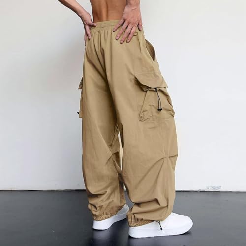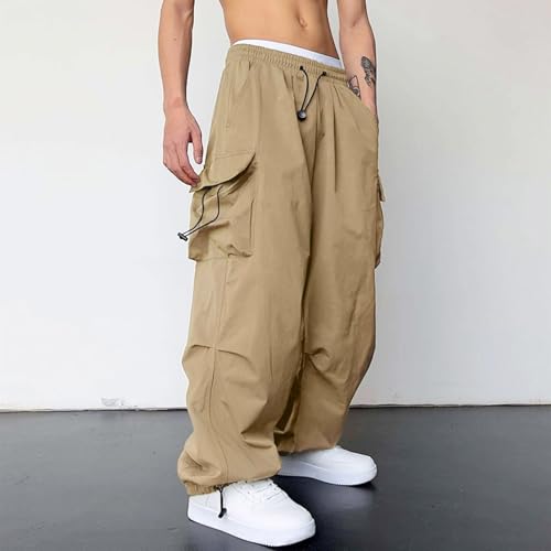 Men's Baggy Cargo Pants Loose-Fit Drawstring Elastic Waist Soild Color Casual Sweatpants with Pockets 7