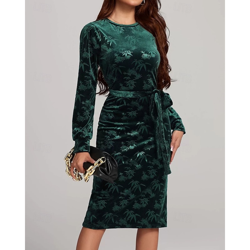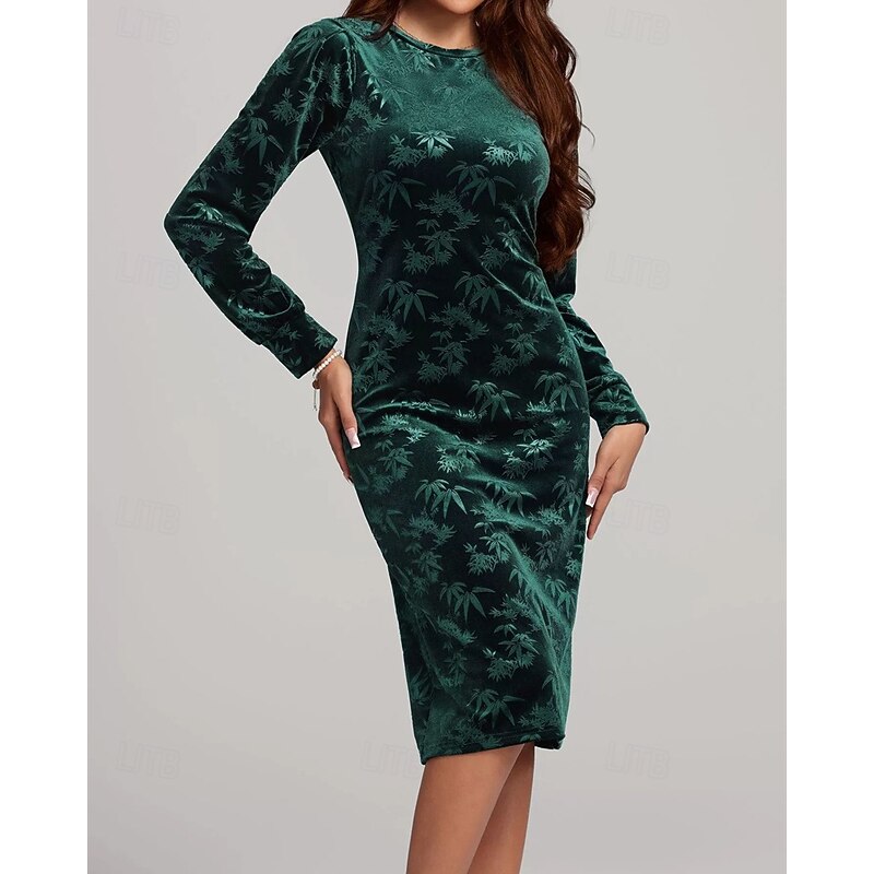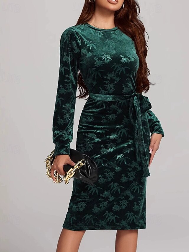 HOT ! Women's Midi Dress Velvet Dress Cocktail Dress Elegant Fashion Modern Outdoor Party Party Evening Wear Regular Fit Plain Long Sleeve Crew Neck Green Spring Autumn