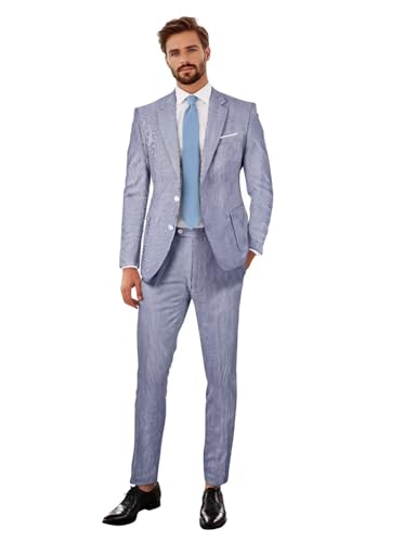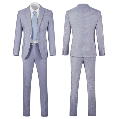Men 2 Piece Seersucker Suit Slim Fit Blazer Pants Set Summer Beach Wedding Suits for Mens Prom Striped Tux Jacket Pant