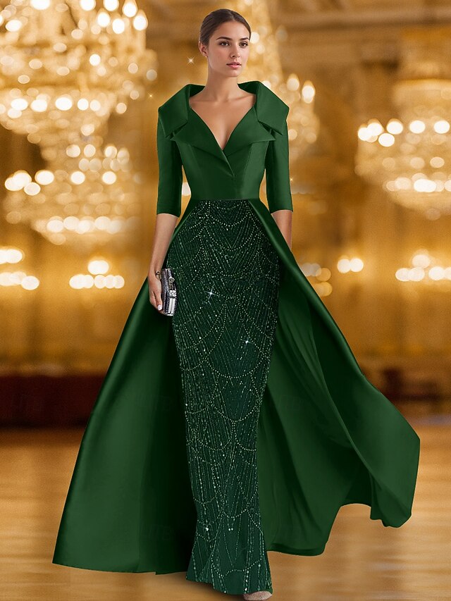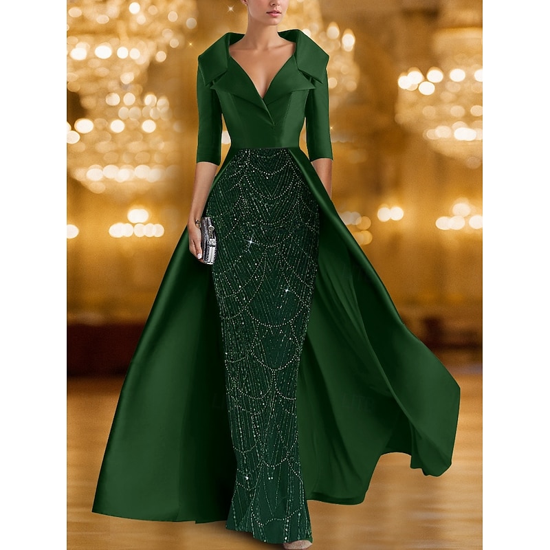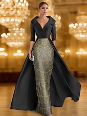 $154.99 - Black Gold A-Line Evening Gown Elegant Formal Dress Formal Wedding Floor Length Half Sleeve Shirt Collar Stretch Satin with Glitter Sequin 2025 2025. Shop for cheap Ball Gown Evening Dresses online? Buy at lightinthebox.com on sale today!