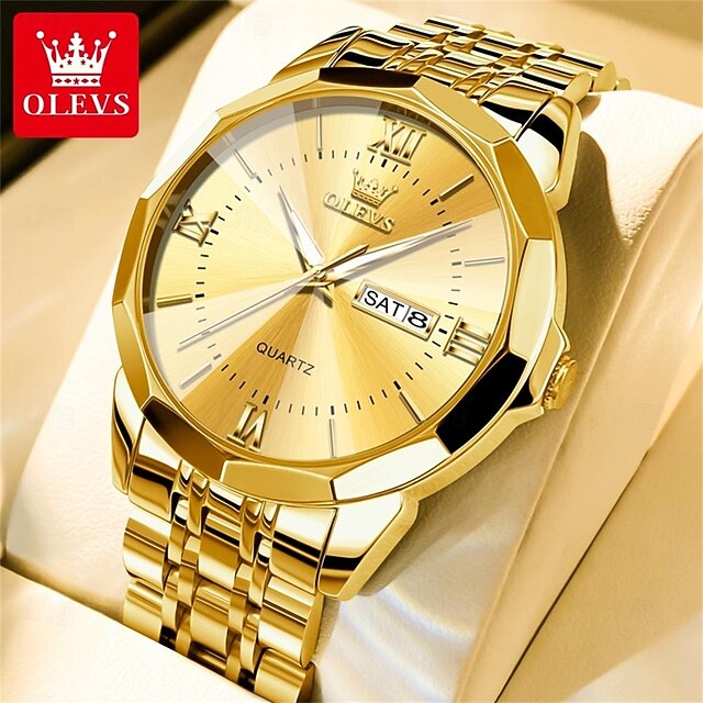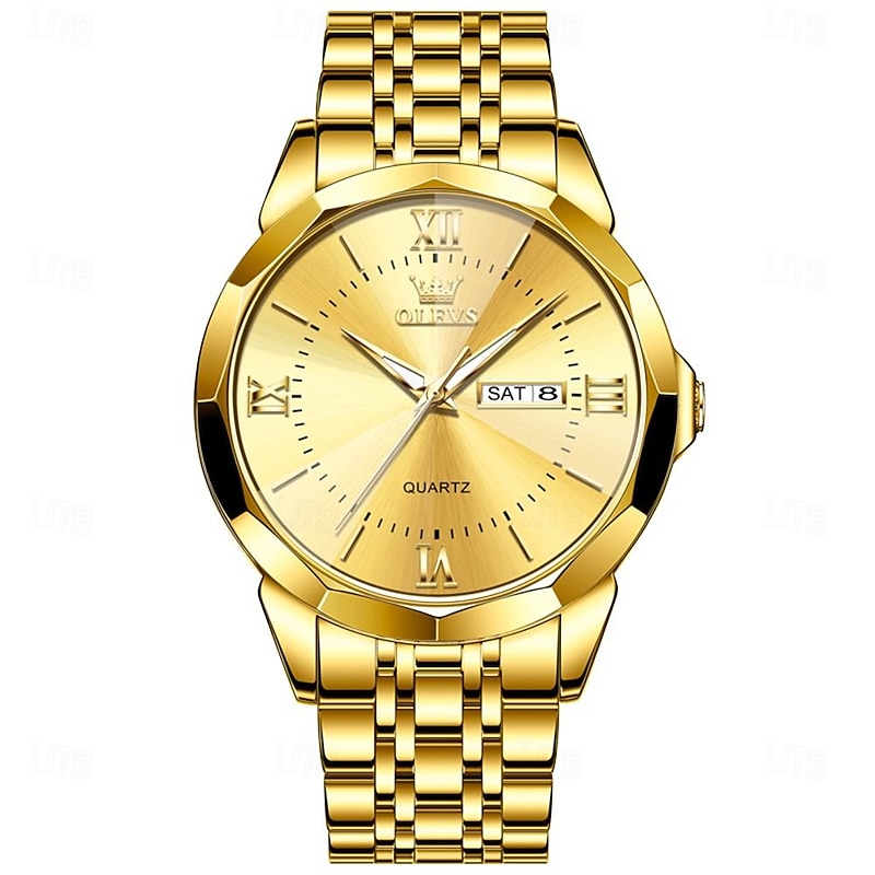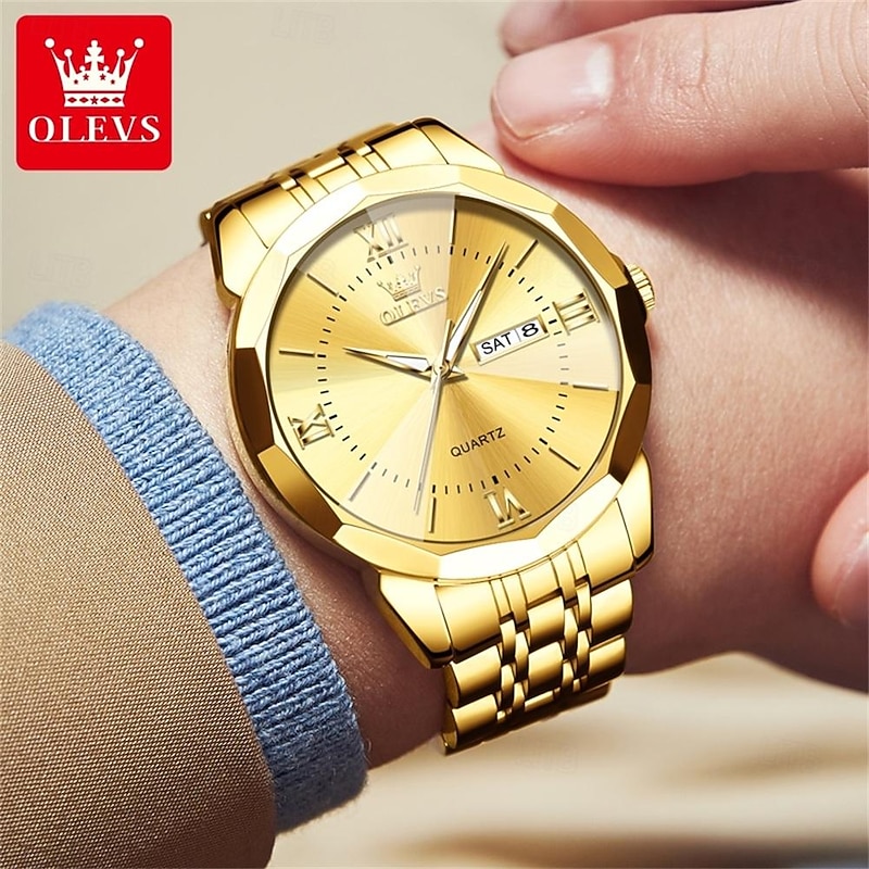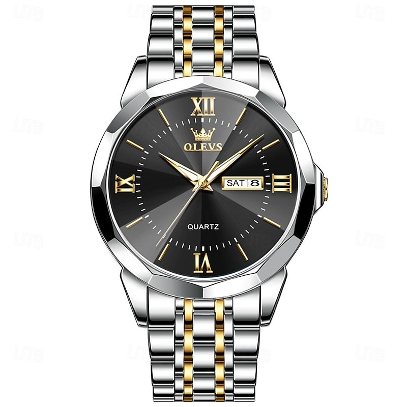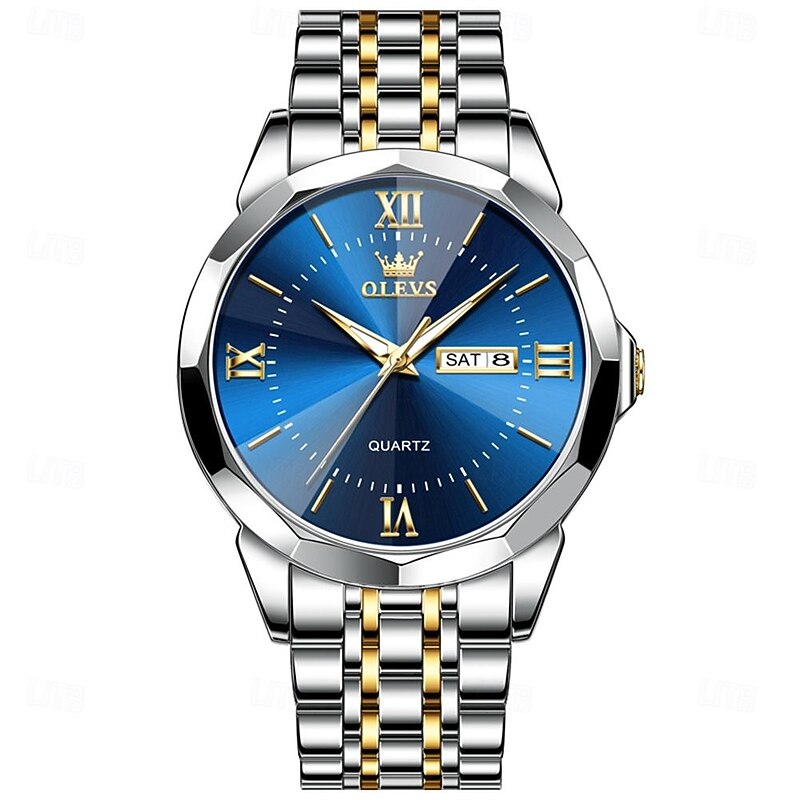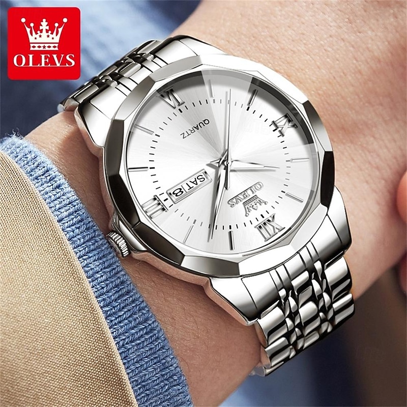 OLEVS Men Quartz Watch Luxury Large Dial Fashion Business Luminous Calendar Date Waterproof Stainless Steel Strap Watch 12