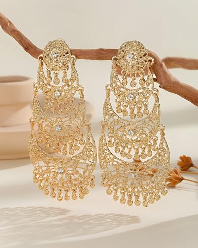 Jhumkas Indian Earrings for Women Indian Bollywood Chandelier Tassel Earrings Gold Ethnic Traditional Jhumka Jhumki Ear-Rings Wedding Party Prom In-dian Jewelry Accessories Gift 4