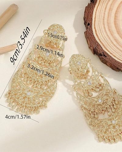 • Indian Bollywood Earrings :Our big gold earrings are about 1.57in wide, 3.54in high, this length can shape your face. Gold indian earrings adopt the shape of retro tassel U-shaped fringe dangling chandelier drops, gold chandelier design for a unique and Indian look. Wearing this indian chandelier earrings can make you look stylish around the crowda,it is a wonderful Jewelry for women brides.