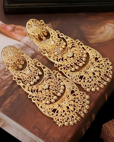 • Indian Earrings for Women:You will get 1 pair of indian earrings.18K gold plated gold plated chandelier earrings, ensuring a lasting finish that is nickle and lead free, hypoallergenic for your skin infection.Jhumkas Indian earrings are a timeless addition to any jewelry collection.