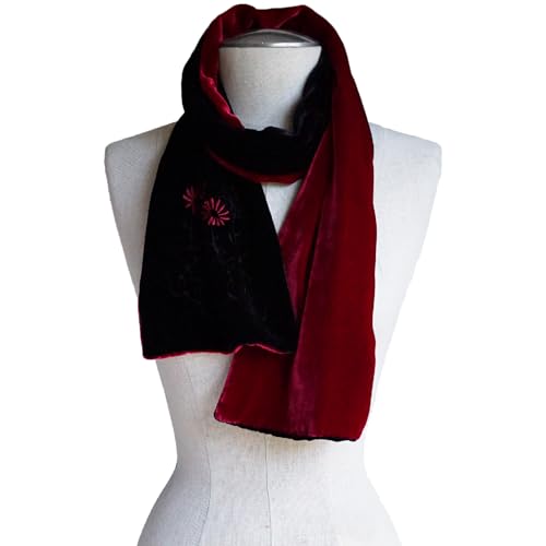 • Fabric type: JennyJames fashion Uniquely Designed for high-end fashion market, Double-layer Silk-Based Burn-out Velvet, Embroidery Oblong Scarf, Black and Red, Luxurious Appearance, Rich Color, Shimmering, Elegant Draping, Smooth and Soft. Reversible