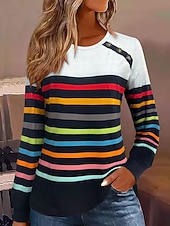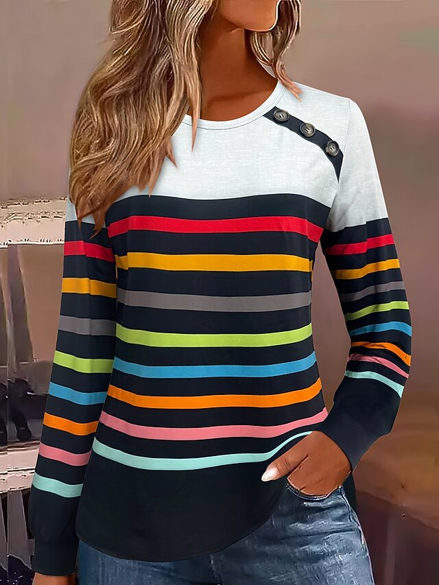 More information about Women's T Shirt Graphic Geometric Vintage Stylish Classic Long Sleeve Crew Neck Regular Tops Daily Going out Weekend Buttons Print White Spring Fall Winter