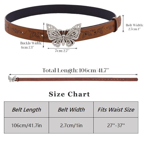 Yalice Brown Western Belt for Women Butterfly Buckle Leather Belt Country Cowboys Cowgirls Belts 7