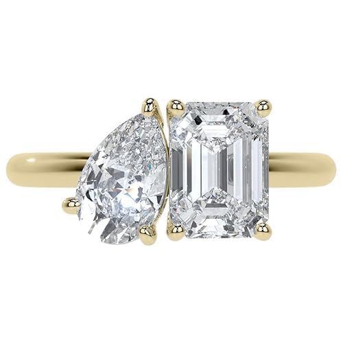 1-2 Ct Pear & Emerald Stone Moi Et TOI Design Moissanite Engagement Ring 10k 14k 18k Gold & 925 Sterling Silver for Womens 6