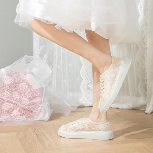 Emily Bridal 115-14 Women's Wedding Sneakers Flats Tennis Shoes Flower Lace Sneakers 5